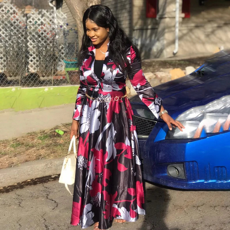 HIGH QUALITY Women Vintage Floral Printed Long Sleeve Spring Dress Retro Plus Size Office Maxi Vestidos Elegant